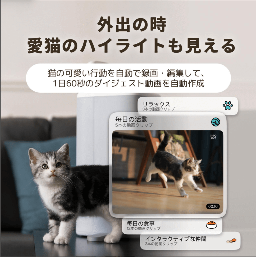 なんとカメラの前で楽しむ猫たちの動画を勝手に編集して作成してくれるらしい。