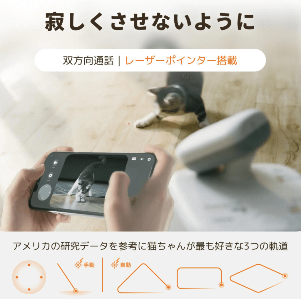 光を追いかけて遊ぶおもちゃがよくあるかと思いますが、なんと自動であれで遊んであげたりできるのです。すごい。