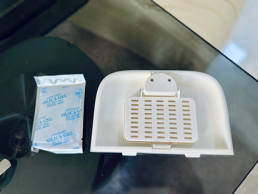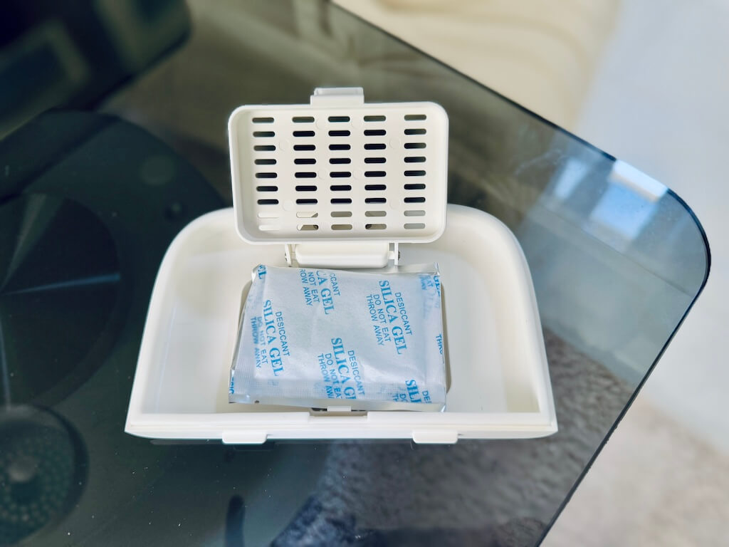 蓋の裏にシリカゲルを入れられる設計になっていて