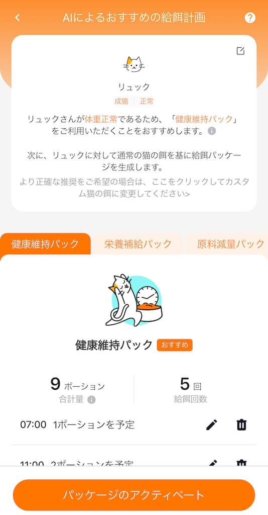 AIの機能で体重や年齢から適切なご飯のあげ方を提案してくれたりします。