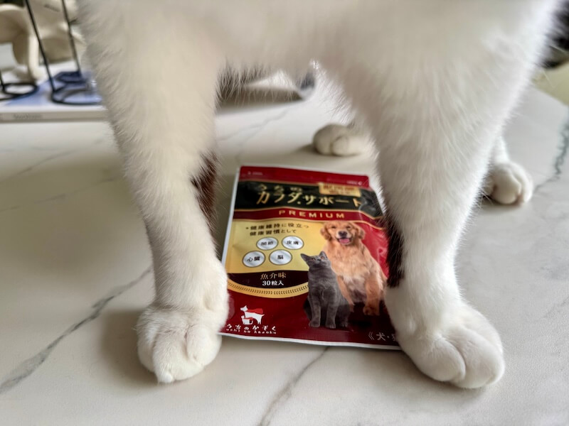 関節系のサプリは意外とたくさんあって、どれも効果は似た感じなので、アレルギーや飲ませやすさなどを含めて選ぶといいと思う。