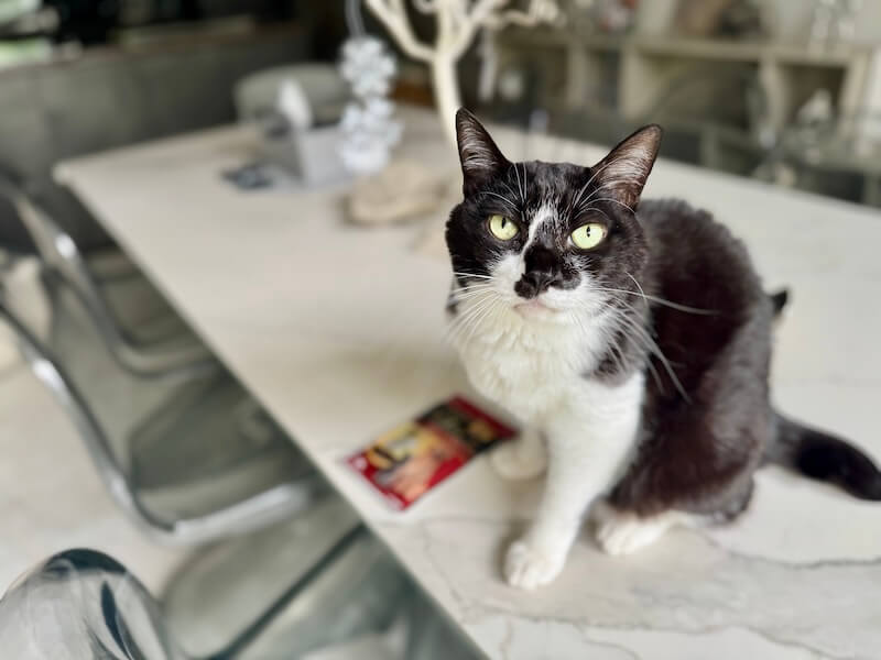 なんとテーブルにぴょんと登ってくれたんです!!!正直ビビってます