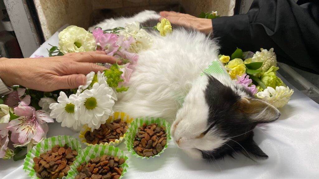 「ムーたん、なんだか久しぶりだね。こんなに綺麗にしてもらって、よかったね。寂しくないよみんないるよ。両親を家族をすんぴを、みんなを幸せにしてくれて、ありがとうね。大好きだよ。また会おうね。」