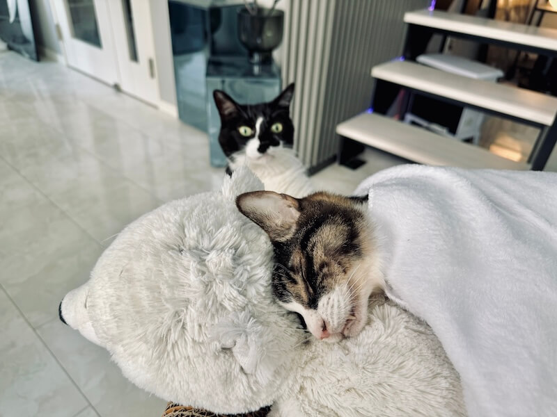 実は以前我が家全員がウイルスに感染した際の、闘病の時にもポーチーを守ってくれてた。