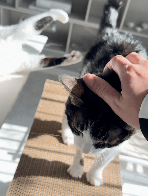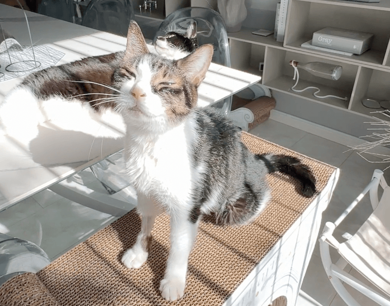 そのおかげなのか、調子が悪い時に引きこもっている階段下や、3階小部屋に引き篭もることもなく、朝は階段下にいるが、昼を過ぎると日向ぼっこ、夕方くらいになると膝、夜はケージで寝るというルーティンが出来上がっている。