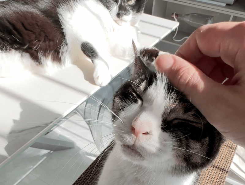 ポーチーをたくさんさわる。こうやって顔を傾けて、体重をかけてくれることが、何より嬉しい。